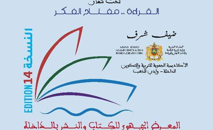 تخليدا للذكرى التاسعة والأربعين للمسيرة الخضراء، والذكرى التاسعة والستين لعيد الاستقلال المجيد، وتنفيذا للاعتراف بالهوية الوطنية، وتنمية للمبادرات الثقافية الهادفة إلى تعزيز روح الانتماء والفخر بالوطن، تنظم المديرية الجهوية لقطاع الثقافة الداخلة وادي الذهب النسخة الرابعة عشر من المعرض الجهوي للكتاب والنشر تحت شعار: القراءة.. مفتاح الفكر، وذلك بدعم من مديرية الكتاب والخزانات والمحفوظات وبالتعاون مع ولاية الجهة.