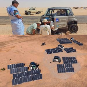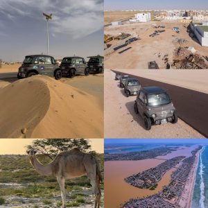 كانت السيارات الكهربائية الصغيرة “سيتروين AMI”، التي تعتمد بالكامل على الطاقة الشمسية، أشبه بسفن فضائية تخترق الصحراء الكبرى لأول مرة، توقف الفريق في نواذيبو لشحن بطاريات السيارات، ليظهر مشهد فريد وعجيب: مركبات صغيرة وسط أرض قاحلة شاسعة، محاطة بلوحات شمسية، وكأنها مأخوذة من فيلم للخيال العلمي.