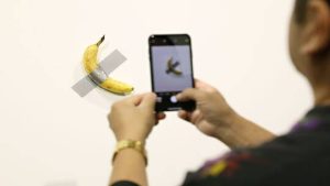 بيعت الموزة الشهيرة المثبتة على الحائط بشريط لاصق، والمعروفة باسم “الكوميدي”، للفنان الإيطالي موريزيو كاتيلان، بمزاد دار سوذبيز بنيويورك مقابل 6.2 مليون دولار. المشتري هو جاستن صن، مؤسس منصة العملات المشفرة “ترون”، الذي وصف القطعة بأنها “ظاهرة ثقافية تربط بين الفن والميمات والعملات المشفرة”.