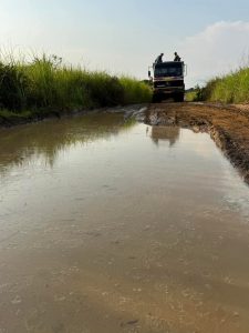 عند العودة للطريق، استأنفت الشاحنات رحلتها وسط طين متزايد العمق. في إحدى اللحظات الحرجة، توقفت إحدى الشاحنات بسبب تعثرها في الطين. ومع ذلك، وبفضل التعاون بين الفريق والسكان المحليين، تم تحرير الشاحنة واستئناف الرحلة.