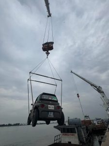 بعد أسبوع من التأخير، بدأ الفريق أخيرا عملية العبور إلى كينشاسا. في مشهد مهيب، رُفعت السيارات الصغيرة بواسطة رافعة عملاقة، ثم وُضعت بعناية على متن البارجة التي ستشق طريقها عبر مياه الكونغو العاتية. كانت لحظات مشحونة بالتوتر، لكن فور وصولهم إلى الضفة الأخرى، كانت بانتظارهم مفاجأة غير متوقعة.