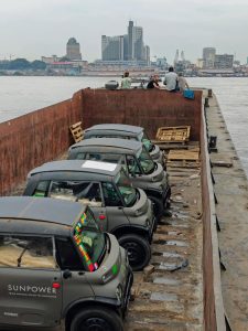 كان الفريق يخطط لصيانة السيارات الصغيرة وتغيير الإطارات المتهالكة، لكن شحنة الإطارات القادمة من فرنسا لم تصل بعد، وظلّت عالقة بين أروقة الجمارك دون تفسير واضح. وما زاد الأمور تعقيدا أن عبور نهر الكونغو لم يكن مجرد خطوة عادية على الخريطة. لم تكن هناك عبّارة رسمية تربط بين برازافيل وكينشاسا، مما اضطر الفريق إلى اتخاذ خيار صعب: استئجار بارجة ضخمة ورافعة عملاقة لنقل السيارات عبر النهر، وهي عملية محفوفة بالمخاطر اللوجستية، خاصة مع هدير مياه الكونغو الذي بدا وكأنه يحذّرهم من التحدي القادم.