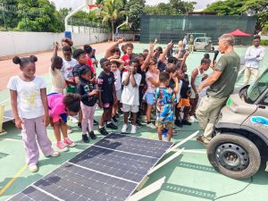 خلال الزيارة، التقى الفريق بجميع فصول المدرسة في جلسات تفاعلية، حيث قدّموا مغامرتهم وشرحوا رؤيتهم حول التنقل المستدام وحماية البيئة. لم يكن الحديث نظريًا فقط، فقد أتيحت لهم الفرصة لتركيب الألواح الشمسية الخاصة بسياراتهم على أرضية الملعب الرياضي، مما جعل التقنية التي يعتمدون عليها ملموسة أكثر للطلاب، وفي الوقت نفسه، تمكنوا من إعادة شحن بطارياتهم بالطاقة الشمسية، في لحظة رمزية توضّح جوهر هذه الرحلة.