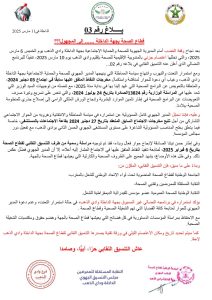ورغم حسن نيتنا الصادقة في مواصلة حوار فعال وناجح، فقد تم توجيه مراسلة رسمية من طرف التنسيق النقابي لقطاع الصحة بتاريخ 6 فبراير 2025، لمتابعة تنفيذ النقاط المتفق عليها في الاجتماع المشار إليه أعلاه، إلا أن المدير الجهوي فضَّل عكس ذلك. وفي ظل هذه الأوضاع، يشهد الجميع على الظروف الصعبة والكارثية التي يعيشها قطاع الصحة بالجهة.