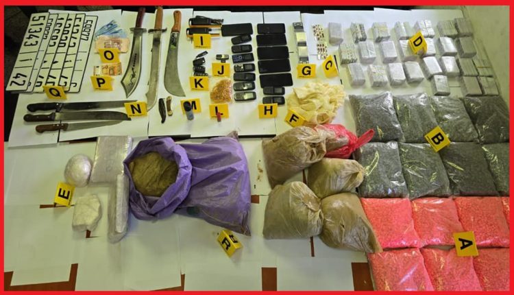 ووفقًا لبلاغ صادر عن المديرية العامة للأمن الوطني، تم تنفيذ العملية في المنطقة القروية “القطوط” بجماعة ونانة، الواقعة في ضواحي مدينة وزان. وقد أسفرت عملية التفتيش عن حجز 94,728 قرصًا مخدرًا من أنواع مختلفة، بالإضافة إلى 3 كيلوغرامات من الكوكايين، و14 كيلوغرامًا من مخدر الشيرا. كما تم ضبط 8 أسلحة بيضاء، ومبالغ مالية بالعملة الوطنية والأوروبية يُشتبه في كونها عائدات من النشاط الإجرامي.