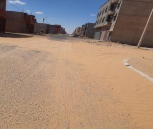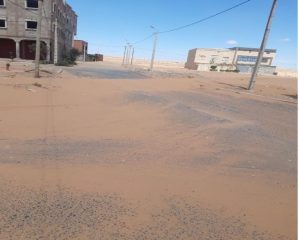 أما المشكلة الثانية، فتتعلق بالترمال المتواصل داخل شوارع وأزقة الحي، نتيجة الرياح القوية القادمة من جهة الطريق المدارية الجديدة، ما يؤدي إلى تراكم كثبان رملية تعيق حركة السير وتحوّل بعض الأزقة إلى ممرات غير سالكة. كما يشتكي السكان من الغبار المتطاير الذي يؤثر سلباً على صحتهم وجودة عيشهم.