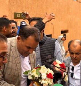 مساء نفس اليوم، استقبلت نهضة طانطان الرئيس الجديد بحفل بهيج في مقرها بشارع الحسن الثاني، حيث تمت تهنئته كما هي العادة بالحليب والتمر والورود، في خطوة ترمز إلى دعم الفعاليات الرياضية لانطلاقة ولايته.