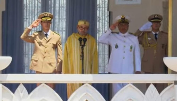 ترأس صاحب الجلالة الملك محمد السادس، القائد الأعلى ورئيس أركان الحرب العامة للقوات المسلحة الملكية، نصره الله، مرفوقا بصاحب السمو الملكي ولي العهد الأمير مولاي الحسن وصاحب السمو الملكي الأمير مولاي رشيد، بعد ظهر اليوم الخميس، بساحة المشور بالقصر الملكي بتطوان، حفل مراسم أداء القسم من طرف الضباط المتخرجين من مختلف المدارس والمعاهد العسكرية وشبه العسكرية وكذا ضباط الصف الذين تمت ترقيتهم إلى رتبة ضابط، وذلك بمناسبة الاحتفال بالذكرى الـ 26 لتربع صاحب الجلالة على عرش أسلافه المنعمين.