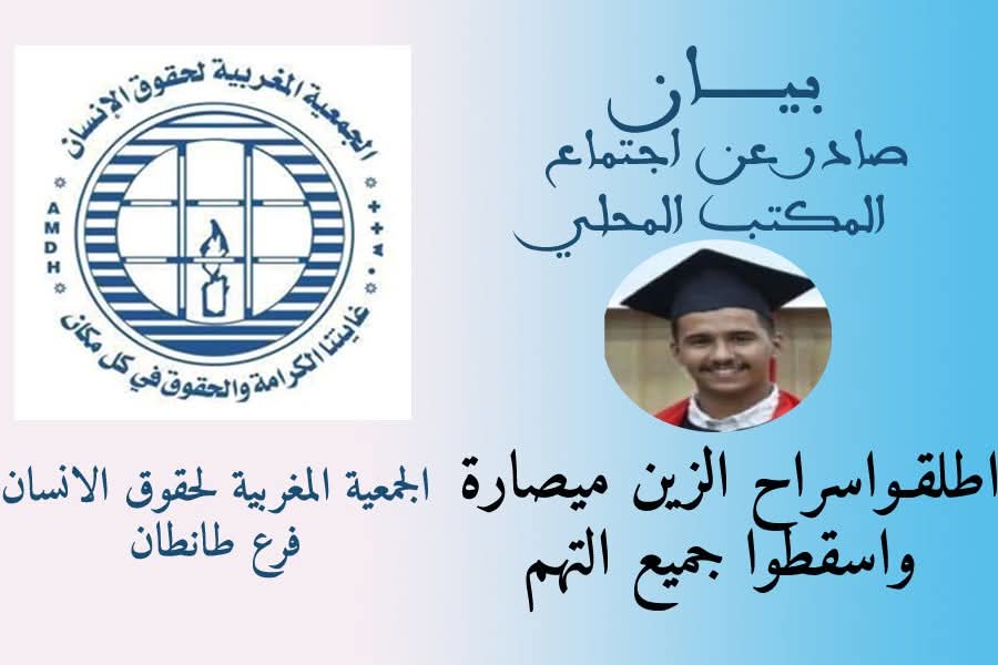 وختمت الجمعية بيانها بالتأكيد على “تضامنها المبدئي واللامشروط” مع المعتقل الزين ميصارة، مع تجديد دعوتها إلى إطلاق سراحه، وتمكين ساكنة طانطان والأقاليم المجاورة من حقوقها الاجتماعية والاقتصادية، خصوصاً في ما يتعلق بالسكن والاصطياف في ظروف ملائمة.