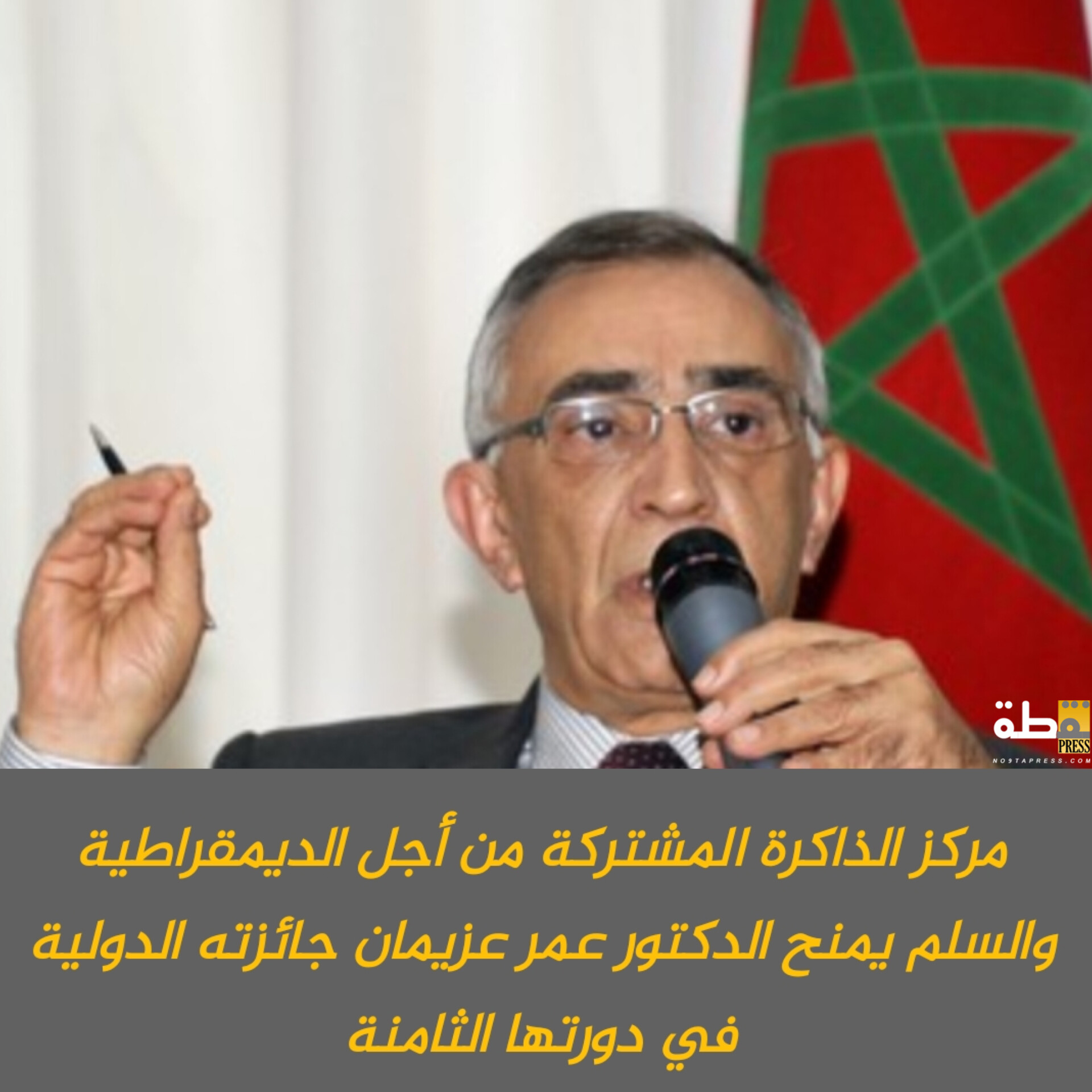 أعلن مركز الذاكرة المشتركة من أجل الديمقراطية والسلم عن تتويج الدكتور عمر عزيمان، مستشار جلالة الملك، بالجائزة الدولية “ذاكرة من أجل الديمقراطية والسلم” في دورتها الثامنة، تقديرا لمساره الحقوقي والفكري والسياسي وإسهاماته البارزة في تعزيز قيم السلم والديمقراطية وحقوق الإنسان.