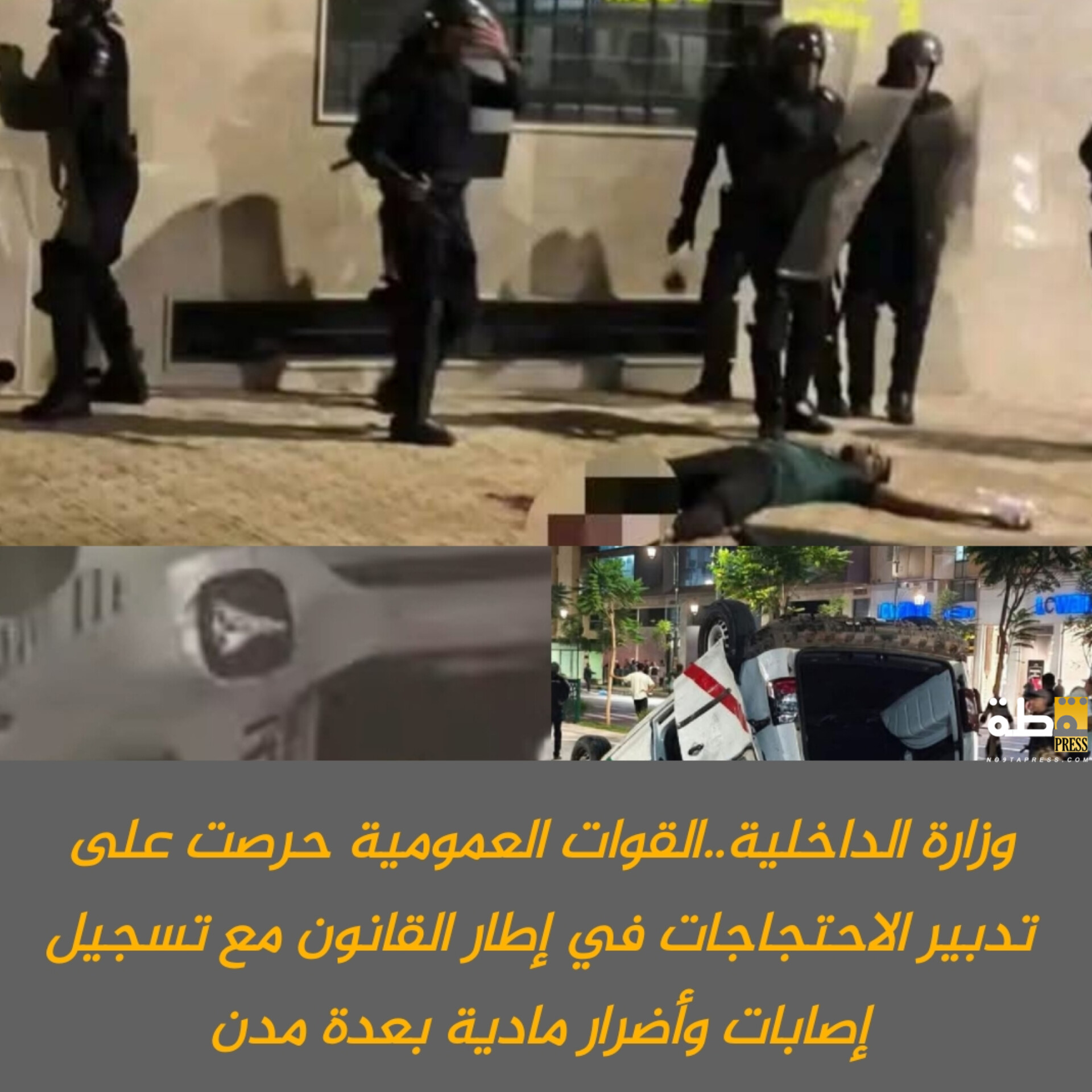 أكد رشيد الخلفي، الناطق الرسمي باسم وزارة الداخلية، أن القوات العمومية باشرت يوم الثلاثاء 30 شتنبر 2025 بعدد من مناطق المملكة، عمليات وتدخلات نظامية هدفت إلى حفظ الأمن والنظام العامين، مشددا على أنها حرصت خلال هذه التدخلات على تدبير الأشكال الاحتجاجية بما يضمن حماية المواطنين وصون سلامتهم، في احترام للمقتضيات القانونية والضوابط المهنية.
