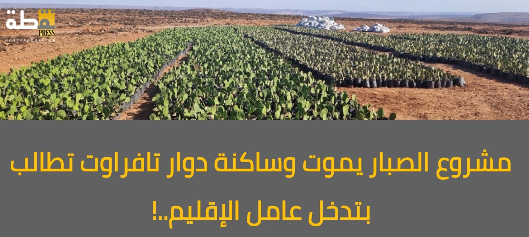 يعيش مشروع غرس الصبار بدوار تافراوت، التابع لجماعة لمسيد بإقليم طانطان، حالة من الجمود منذ أشهر، وسط تبادل الاتهامات بين المديرية الإقليمية للفلاحة والمقاول المكلف بإنجازه، في وقت تبدي فيه الساكنة استياء متزايدا من تعثر هذا الورش التنموي الذي كان يُعوَّل عليه للنهوض بالمنطقة ومحاربة التصحر وخلق فرص عمل محلية.