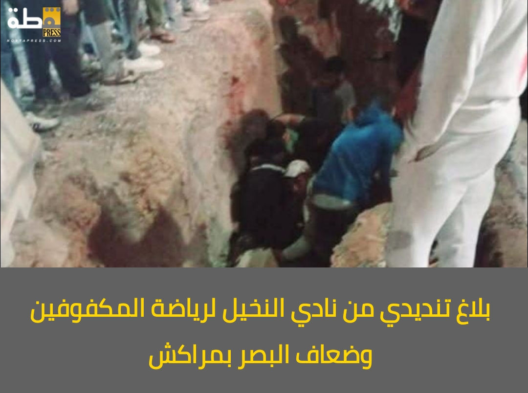 على إثر الحادث المؤسف الذي تعرض له تلميذان من ذوي الإعاقة البصرية، ويتعلق الأمر بالتلميذين عبد النور ويونس اليوسفي، اللذين سقطا في حفرة بالقرب من معهد أبي العباس السبتي للمكفوفين بمدينة مراكش، عبّر نادي النخيل لرياضة المكفوفين وضعاف البصر عن استنكاره الشديد واستيائه العميق من هذا الإهمال غير المقبول الذي عرّض حياة وسلامة التلاميذ للخطر.