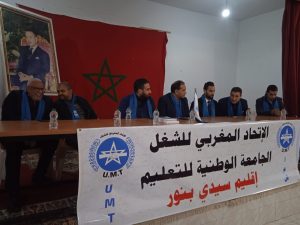 من جانبه، سلط الأستاذ منير زينون الضوء على الأدوار الطلائعية للاتحاد المغربي للشغل في مجال التأطير والمواكبة والترافع عن قضايا الشغيلة التعليمية، على المستويات المحلية والإقليمية والجهوية والوطنية.