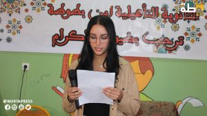 وافتُتحت فقرات الصبيحة بلوحة ترحيبية قدّمها تلاميذ المؤسسة، تلتها تلاوة آيات من الذكر الحكيم بصوت التلميذة أميمة بوسكري، ثم أداء النشيد الوطني، في لحظة رمزية جسدت تلاقي اللغة بالوطن، والهوية بالانتماء.