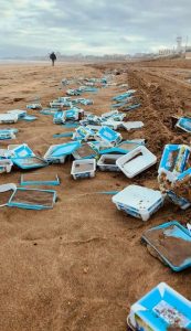 في كورنيش الدار البيضاء، تحول الشاطئ الذي اعتاد عليه السكان والزوار، إلى مشهد مأساوي بعد واقعة سقوط حوالي 85 حاوية من سفينة شحن في عرض البحر، قبالة مدخل الميناء، ساقت الأمواج العاتية محتوياتها نحو الشاطئ، فانتشرت أكوام من البلاستيك، والزجاجات الفارغة، وبقايا النفايات الأخرى على طول الشاطئ.