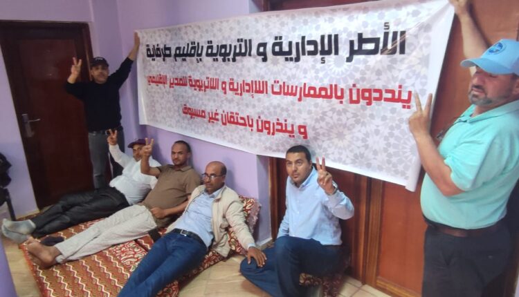 شارك أطر الادارة التربوية بإقليم طرفاية يخوضون إضرابا مفتوحا بمقر المديرية الاقليمية الى حين رحيل المدير الاقليمي.. يتبع… شارك