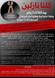 من جهة اخرى، فقد توصلت “نقطة بريس” على نداء لم تتأكد من مصدره منسوب ل “المتبارين المرسبين من امتحان الأهلية لمزاولة مهنة المحاماة” يدعو للتظاهر أمام البرلمان للمطالبة بحسب النداء التحقيق في نتائج الامتحان.