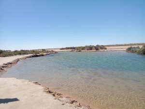 في وسط الصحراء وعلى طريق وعرة وامتدادات تضاريسية صحراوية، وبعد قطعنا أكثر من 145 كلم جنوب شرق مدينة الداخلة، توجهنا صوب أحد المواقع الصحراوية الرطبة ذات الأهمية الإيكولوجية أي نحو سبخة “إمليلي”. وفي منطقة لها تاريخ عريق كواحدة من نقط تجمع ”فرگان” أهل الصحراء قديما وذلك راجع إلى وفرة المياه بالمنطقة والجو المعتدل الذي تتميز به نظرا لقربها من البحر.
