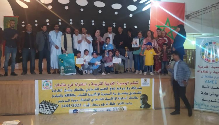 أسدل الستار مساء أمس الخميس بدار الشباب بئرانزران طانطان، على فعاليات البطولة الإقليمية للشطرنج الخاطف والتي كانت تظاهرة رياضية تكريمًا لروح الفقيد محمد الخير أحد أطر قطاع الشباب سابقًا رحمه الله، بحضور الكاتب الجهوي للجمعية المغربية للتربية والطفولة و المدير الإقليمي لقطاع الشباب بطانطان و الجالية الطانطانية المقيمة بديار المهجر في شخص إطارهم الجمعوي جمعية العبور للجالية المقيمة بالخارج، بالإضافة الى أحد أعضاء مجلس جهة كلميم وادنون و السيدة نائبة رئيس المجلس البلدي لطانطان والمسؤول الإقليمي للشؤون النسوية ورياض الأطفال و المسؤول عن الرياضة المدرسية.