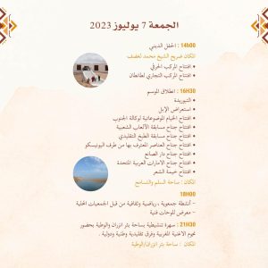 وسيمثل الموسم أيضا فرصة للاستمتاع وللتعرف على عادات وثقافات مختلفة من خلال الكارنفال الاستعراضي الذي سيجمع مئات المشاركين ممن سيجوبون شوارع المدينة وسيقدمون عروضا فنية ورياضية وتراثية ماتعة تقدم صورة عن الموروث الثقافي غير المادي للعادات والمناطق الصحراوية.