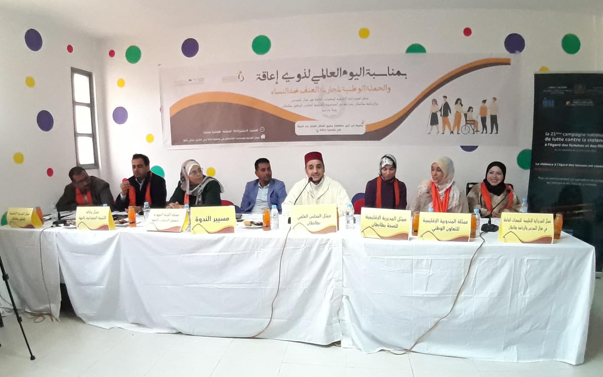 نظمت الفيدرالية الإقليمية للجمعيات العاملة في مجال التدريس والرياضة بطانطان يوما دراسيا بعنوان: ” جميعا من أجل مناهضة جميع أشكال العنف ضد المرأة في وضعية إعاقة” بشراكة مع المندوبية الإقليمية للتعاون الوطني وذلك يومه السبت 09 دجنبر 2023 إبتداء من الساعة العاشرة صباحا، وقد احتضن مركز التوجيه ومساعدة الأشخاص في وضعية إعاقة بحي الشيخ عبداتي فعاليات هذا اليوم الدراسي الذي عرف حضورا مكتفا، حيث شارك فيه مجموعة من المتدخلين ممثلات وممثلي عن مختلف المصالح الخارجية والهيئات الحقوقية والمدنية قاسمهم المشترك مناهضة جميع أشكال العنف ضد المرأة في وضعية إعاقة.