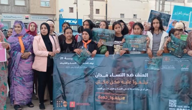 استمرارا في تنزيل برنامجها المسطر وفي إطار فعاليات الحملة الوطنية التحسيسية 21 لمناهضة العنف ضد النساء والفتيات حول موضوع: حماية النساء من العنف في الفضاءات العامة تحت شعار: ” العنف مدان نبلغو عليه في كل مكان”، نظمت المنسقية الجهوية للتعاون الوطني بجهة الداخلة وادي الذهب رواقا تحسيسيا ثالثا بكورنيش مدينة الداخلة بشراكة مع الفضاء متعدد الوظائف بالداخلة وبتنسيق مع السلطات المحلية، يومه السبت 9 دجنبر 2023، و قد عرف الرواق وقفة تحسيسية رمزية شاركت فيها عدد من الجمعيات الشريكة والفعاليات المدنية، بمشاركة أكثر من 200 امرأة و فتاة، هذا الرواق التحسيسي شهد تفاعل مستفيدات المركز مع السادة المحاضرين حول موضوع الحملة.