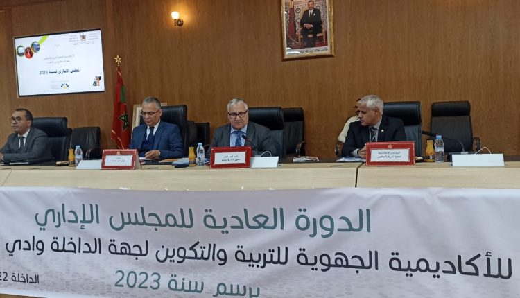انعقدت اليوم الجمعة 22 دجنبر 2023 بقاعة الإجتماعات بجهة الداخلة وادي الذهب أشغال الدورة العادية للمجلس الإداري للأكاديمية الجهوية للتربية والتكوين برسم سنة 2023، وقد ترأسها السيد الحسين قضاض المفتش العام للشؤون الإدارية، نيابة عن السيد وزير التربية الوطنية والتعليم الأولي والرياضة.