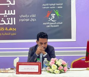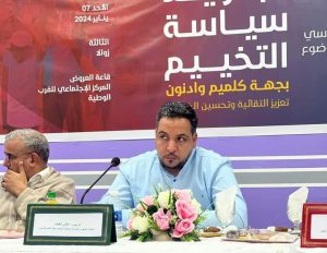 التأمت في لقاء دراسي حول موضوع : تجويد سياسة التخييم بجهة كلميم وادنون .. تعزيز التقائية وتحسين الخدمات ، عدد من الجمعيات و المنظمات التربوية و المسؤولين عن قطاع الشباب يوم الاحد 07 يناير 2024 بالمركز الاجتماعي للقرب بالوطية اقليم طانطان . هذا الحدث الهام بجهة وادنون الذي دعت له الجامعة الوطنية للتخييم المكتب الجهوي كلميم وادنون و الذي كان فرصة سانحة لطرح مجموعة الإشكالات المتعلقة بمجالات البرنامج الوطني للتخييم على مستوى جهة كلميم وادنون و الذي شارك فيه عدد من الفعاليات التربوية محملين بخطاب الأمل في مواجهة التحديات و متجاوزين منطق الوصف نحو تدبير واقع المخيمات .