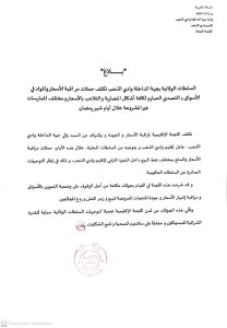 بعد تعالي اصوات العديد من المواطنين عبر منصات وسائل التواصل الاجتماعي، و في غياب جمعيات حماية المستهلك، وبسبب الأسعار الملتهبة التي عرفتها مختلف الأسواق بمدينة الداخلة، أصدرت ولاية الداخلة بلاغا بخصوص الحملات التي ستقوم بها المصالح المختصة لمراقبة الاسعار والمواد الإستهلاكية في الاسواق والتصدي الصارم لكافة الاشكال والمضاربات و التلاعب بالاسعار ومختلف الممارسات غير المشروعة خلال ايام رمضان.