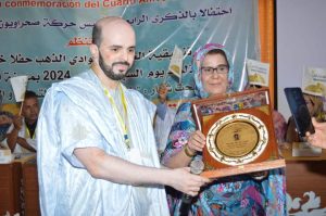 من ضمن الكلمات التي تعاقبت على منبر الحفل الخطابي ما جاء في كلمة الحسن الحويدگ ، بصفته ممثلا للمجتمع المدني ب”حركة صحراويون من أجل السلام ” ،بجهة الداخلة وادي الذهب، لقيمتها و عمقها و مواطن الصدق فيها ، كما في غيرها ، نقدم مقتطفات منها كانموذج كالتالي :