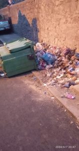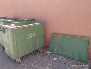 وعليه فالجماعة تعمل بشكل يومي في جمع النفايات الصلبة بنفوذ الجماعة ،غير أن بعض ساكنة الحي المذكور أعلاه لايلتزمون بالقوانين التنظيمية المعمول بها فيما يخص نوعية النفايات الغير المسموح رميها في حاويات الازبال كمواد البناء مما يثقل وزنها ويصعب رفعها من طرف الشاحنة وبالتالي كسرها واتلافها.