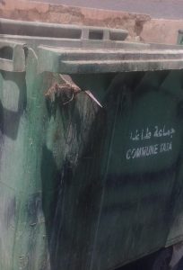 لذا نناشد الساكنة والمجتمع المدني بالتعاون الايجابي مع الجماعة للإبلاغ عن الحالات السلبية التي لا تحترم قوانين المعمول بها لصيانة الممتلكات العامة و من ظمنها حاويات الازبال التي تتلف بشكل شبه يومي، وكذا ندعو وسائل الاعلام المحلية الغيورة على تسليط الضوء على هذه الممارسات التي لا تعبر عن مبادئ المواطنة الصادقة، وتحسيس الساكنة المحلية على التعاون مع مصالح الجماعة لمكافحة هذه الظاهرة.”